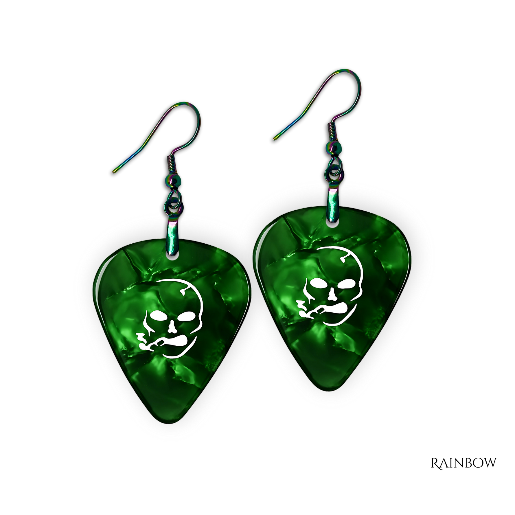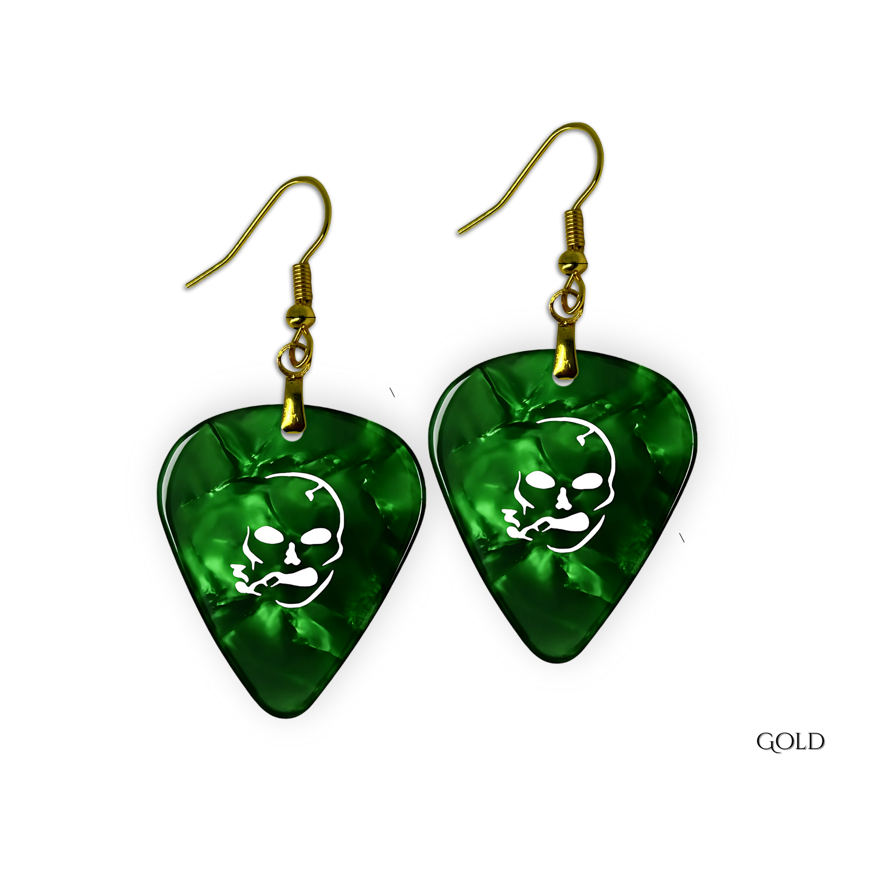 SS Smoking Skull Earrings- green and white